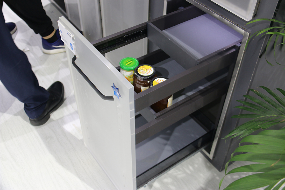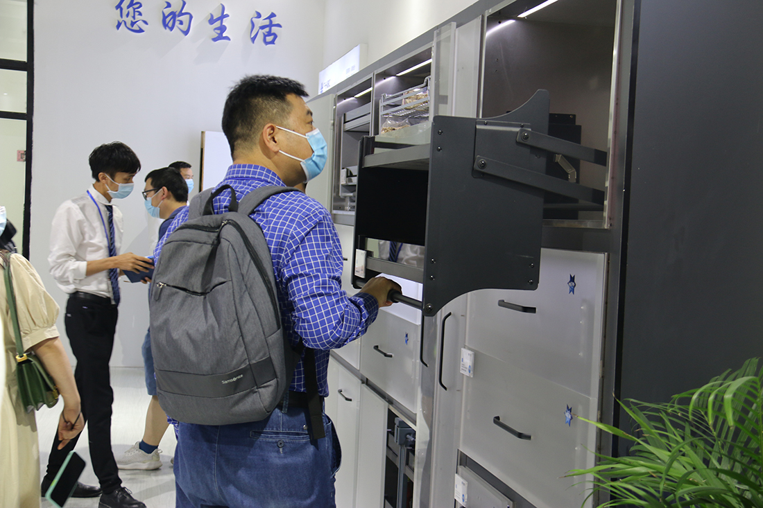 此次展會(huì)強(qiáng)勢(shì)吸睛的,當(dāng)屬星徽的上翻系統(tǒng),它具有雙緩沖功能,門(mén)板可打開(kāi)到60°±15°以上角度任意懸停階段,且免工具快速拆卸,輕松開(kāi)啟、輕柔閉合,高處物品輕松拿放,可謂是高度舒適的操作體驗(yàn)!