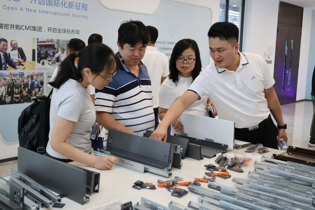 最后惠州家具行業(yè)協(xié)會成員一行參觀了星徽精密五金展廳,親身體驗(yàn)了星徽精密高端家居五金在廚房、臥室等場景中的具體應(yīng)用;星徽精密產(chǎn)品的創(chuàng)新性、原創(chuàng)設(shè)計(jì)和匠心工藝得到協(xié)會成員一致的肯定。